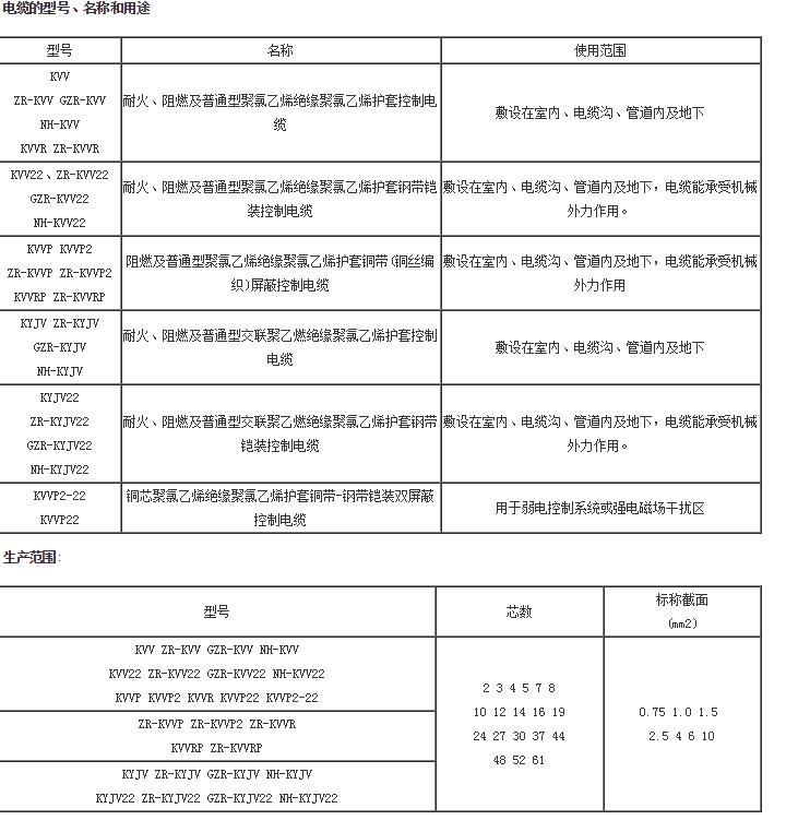 KYJV22型交聯(lián)聚乙烯絕緣鋼帶鎧裝聚氯乙烯護套控制電纜 KVVP型聚氯乙烯絕緣聚氯乙烯護套銅絲屏蔽控制電纜